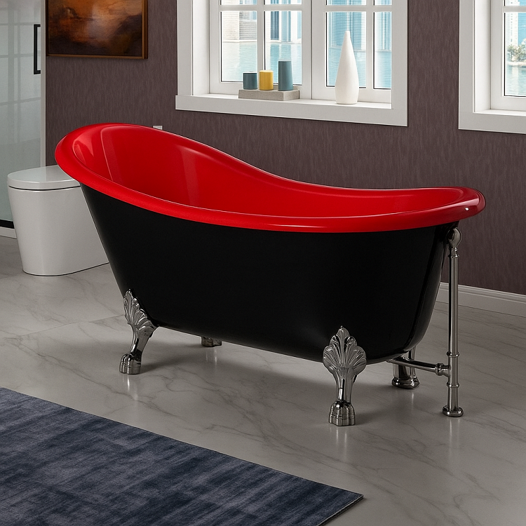 172 x 80 AYAKLI KÜVET SİYAH KIRMIZI KROM FİYAT VE ÖZELLİKLERİ